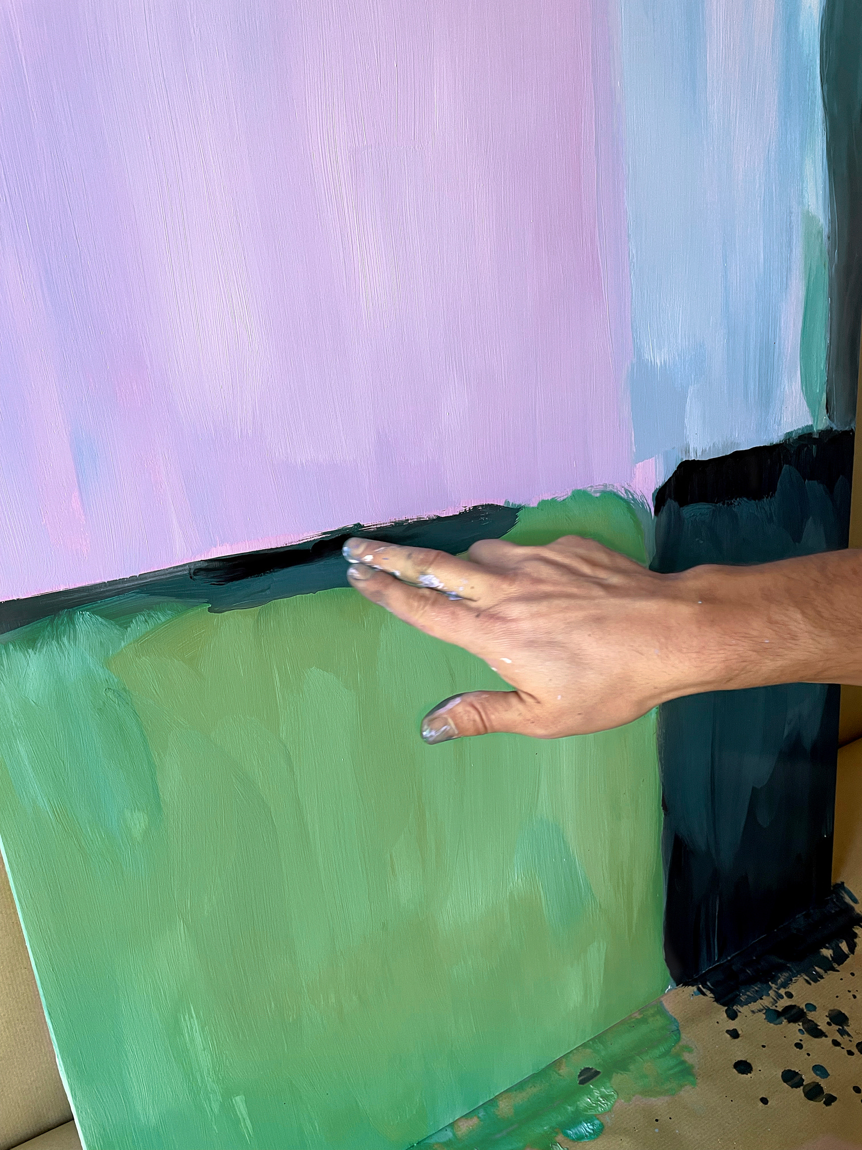 Luna is part of a 6 pieces collection called New Pompeii where the furniture is entirely hand-painted with acrylic colors by me through a multiple layering process. A variety of tones of the same color are applied onto each other creating countless chromatic variations and revealing previous phases of the process. Different drying stages of the acrylic paint are visible through sudden interruptions and smoother blending.